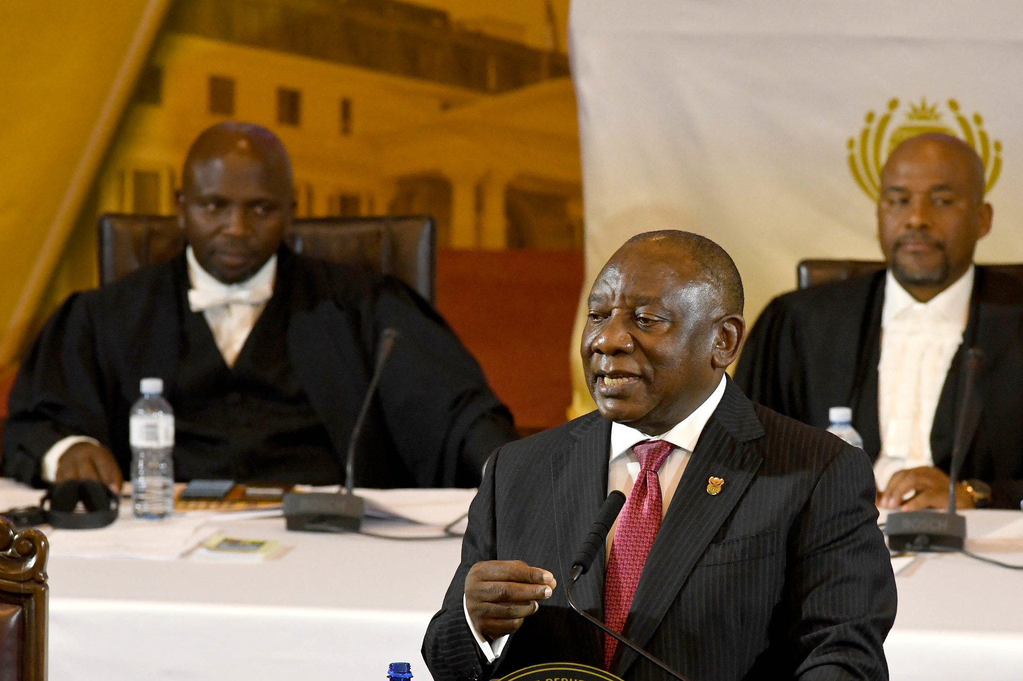 The Economic Freedom Fighters boycotted the SONA, promising to focus on their manifesto launch on Saturday, 10 February, in Durban. EFF leader Julius Malema and six other MPs have been banned from parliament for the month of February following episodes of disruptive behaviour. Julius Malema branded Ramaphosa as a “coward” who was “protected by the judges.”